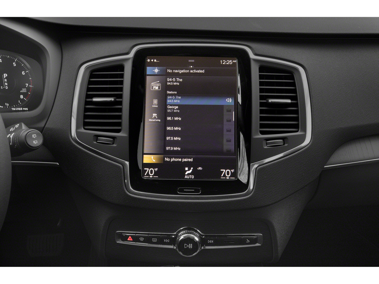 - Radio: harman/kardon Premium Sound w/Sensus Nav Pro -inc: Navigation Pro w/road sign information, 14 speakers including subwoofer, 9" Volvo Sensus touchscreen display, Bluetooth connectivity w/audio streaming, SiriusXM satellite radio w/3-month trial subscription, smartphone integration (Apple CarPlay/Android Auto), 2 front USB connectors, voice control and WiFi hotspot w/complimentary trial subscription