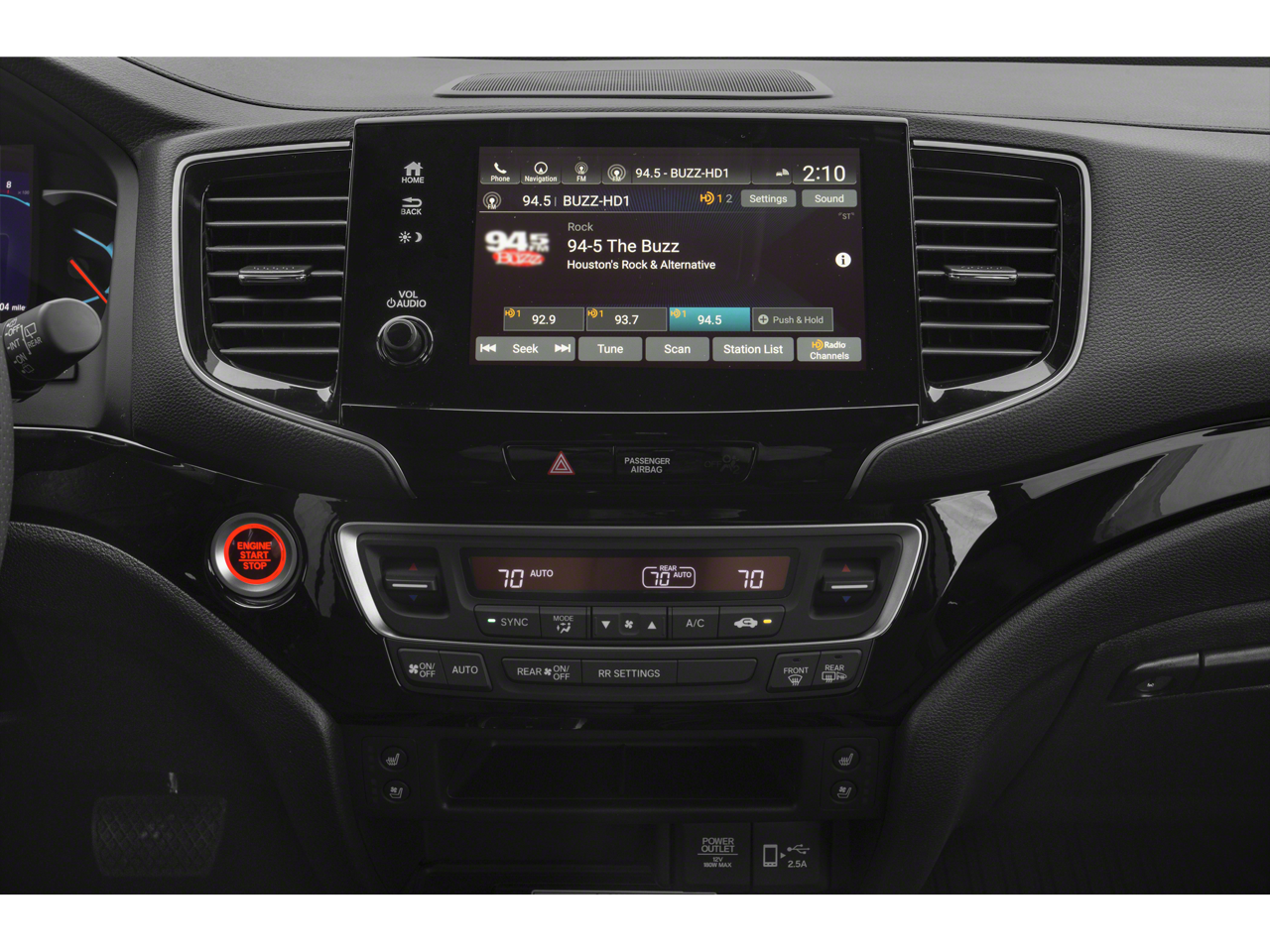 - Radio: 540-Watt Premium Audio System w/10 Speakers -inc: subwoofer, 8" display audio w/high-resolution electrostatic touch-screen and customizable feature settings, Bluetooth® HandsFreeLink, Bluetooth® streaming audio, MP3/auxiliary input jack in center console, Radio Data System (RDS), Speed-Sensitive Volume Compensation (SVC), (3) 2.5-amp USB charging ports, 12-volt power outlets in front console, center console and cargo area, HondaLink, Apple CarPlay integration, Android Auto integration, CabinControl remote compatibility, SMS text message function, SiriusXM, HD Radio, Wi-Fi hotspot capability, 2.5-amp USB smartphone/audio interface port in front console, Honda Satellite-Linked Navigation System w/voice recognition and Honda HD digital traffic, 115-volt power outlet, HondaLink subscription services and wireless phone charger SiriusXM services require a subscription after any trial period. Honda HD digital traffic service is only available in the United States, except Alaska. Honda wireless phone charger is compatible with both Qi and Powermat wireless charging standards. Check with your device's manufacturer for wireless capability.