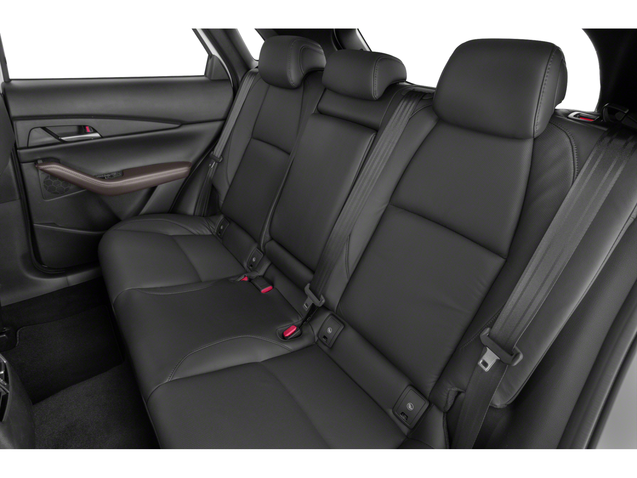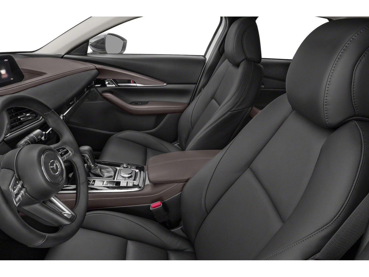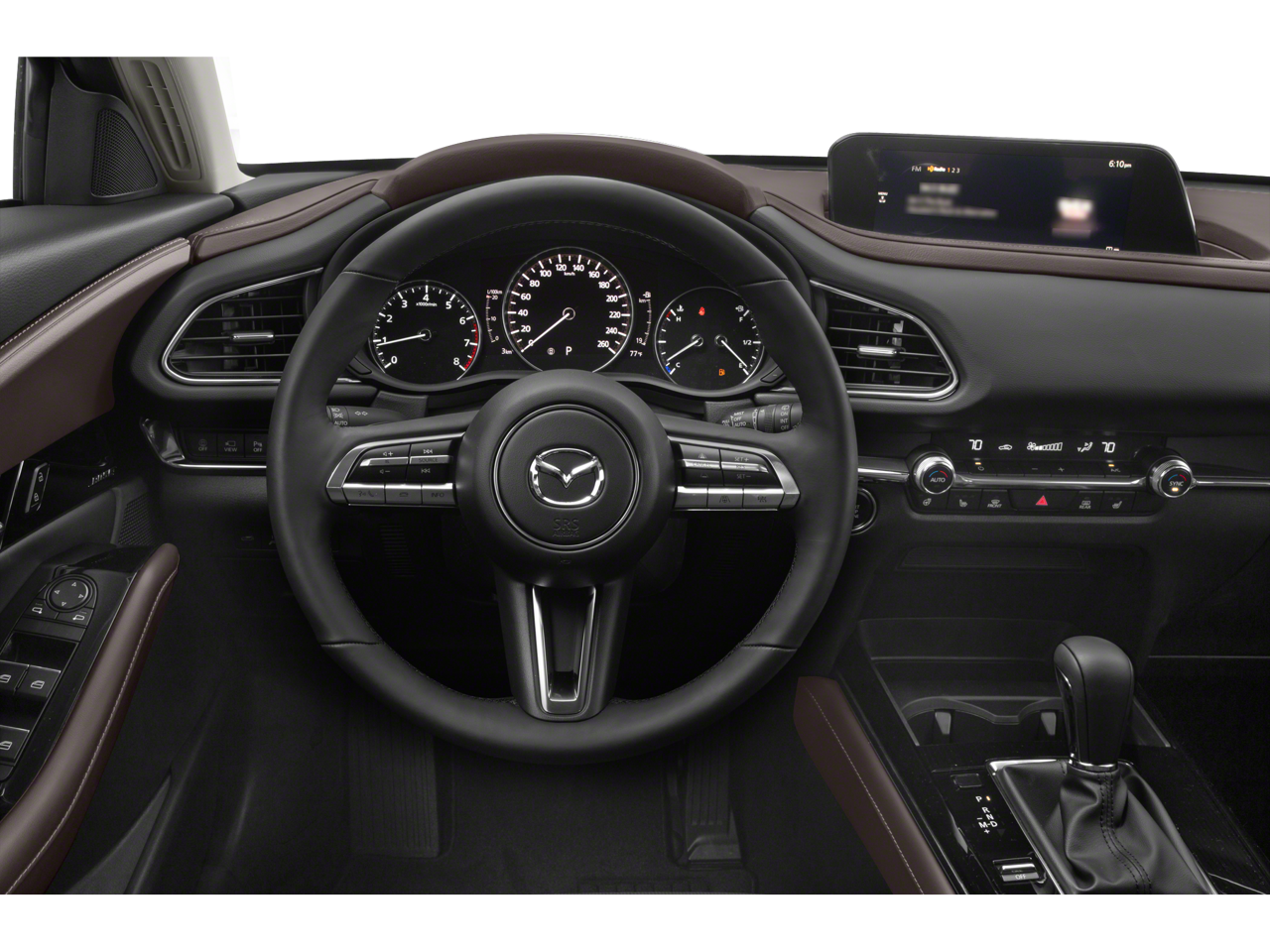 This CX-30 2.5 Turbo Premium Plus Package is nicely equipped with 12 Speakers, 3.841 Axle Ratio, 4-Wheel Disc Brakes, ABS brakes, Air Conditioning, Alloy wheels, AM/FM radio: SiriusXM, AppLink/Apple CarPlay and Android Auto, Auto High-beam Headlights, Auto-dimming door mirrors, Auto-dimming Rear-View mirror, Automatic temperature control, Black Lug Nuts & Black Wheel Locks, Brake assist, Bumpers: body-color, Cargo Mat, Compass, Delay-off headlights, Driver door bin, Driver vanity mirror, Dual front impact airbags, Dual front side impact airbags, Electronic Stability Control, Emergency communication system: Mazda Connected Services (Automatic 911 Dialing), Front anti-roll bar, Front Bucket Seats, Front Center Armrest, Front dual zone A/C, Front reading lights, Front wheel independent suspension, Fully automatic headlights, Garage door transmitter: HomeLink, Heads-Up Display, Heated door mirrors, Heated Front Bucket Seats, Heated front seats, Heated steering wheel, Illuminated entry, Knee airbag, Leather Seat Trim, Leather Shift Knob, Leather steering wheel, Low tire pressure warning, MAZDA CONNECT Infotainment System, Memory seat, Navigation system: MAZDA CONNECT, Occupant sensing airbag, Outside temperature display, Overhead airbag, Overhead console, Panic alarm, Passenger door bin, Passenger vanity mirror, Power door mirrors, Power driver seat, Power Liftgate, Power moonroof, Power steering, Power windows, Radio data system, Radio: AM/FM/HD Audio System w/Mazda Navigation, Rain sensing wipers, Rear seat center armrest, Rear window defroster, Rear window wiper, Remote keyless entry, Roof rack: rails only, Soul Red Crystal Metallic Paint, Speed control, Speed-sensing steering, Split folding rear seat, Spoiler, Steering wheel mounted audio controls, Tachometer, Telescoping steering wheel, Tilt steering wheel, Traction control, Trip computer, Turn signal indicator mirrors, Variably intermittent wipers, and Wheels: 18 x 7J Black Aluminum Alloy.
