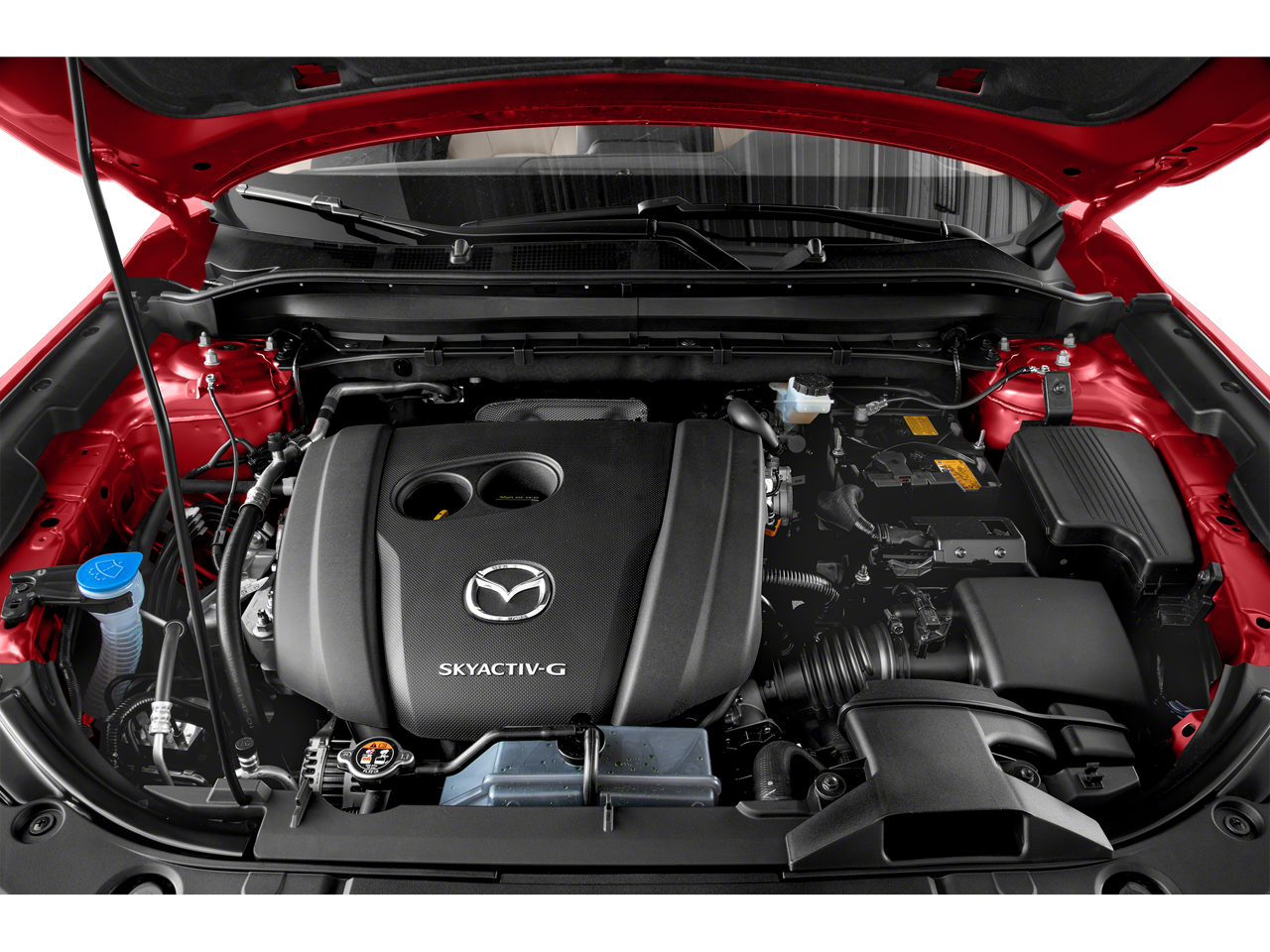 This CX-5 2.5 S Select Package is nicely equipped with 4-Wheel Disc Brakes, 4.624 Axle Ratio, 6 Speakers, ABS brakes, Air Conditioning, Alloy wheels, AM/FM radio, AppLink/Apple CarPlay and Android Auto, Auto High-beam Headlights, Automatic temperature control, Brake assist, Bumpers: body-color, Delay-off headlights, Driver door bin, Driver vanity mirror, Dual front impact airbags, Dual front side impact airbags, E911 Automatic Emergency Notification, Electronic Stability Control, Emergency communication system: MAZDA CONNECT, Exterior Parking Camera Rear, Four wheel independent suspension, Front anti-roll bar, Front Bucket Seats, Front Center Armrest w/Storage, Front dual zone A/C, Front reading lights, Fully automatic headlights, Heated Front Bucket Seats, Heated front seats, Illuminated entry, Infotainment System Voice Command, Leather Shift Knob, Leatherette Seat Trim, Low tire pressure warning, Multifunction Commander Control, Occupant sensing airbag, Outside temperature display, Overhead airbag, Overhead console, Pandora, Panic alarm, Passenger door bin, Passenger vanity mirror, Power door mirrors, Power driver seat, Power steering, Power windows, Radio Broadcast Data System Program Information, Radio data system, Radio: AM/FM/HD Audio System, Rain sensing wipers, Rear anti-roll bar, Rear reading lights, Rear seat center armrest, Rear window defroster, Rear window wiper, Remote keyless entry, SMS Text Msg Audio Delivery & Reply, Soul Red Crystal Metallic Paint, Speed control, Speed-sensing steering, Split folding rear seat, Spoiler, Steering wheel mounted audio controls, Tachometer, Telescoping steering wheel, Tilt steering wheel, Traction control, Trip computer, Turn signal indicator mirrors, Variably intermittent wipers, and Wheels: 17 x 7J Aluminum Alloy.
