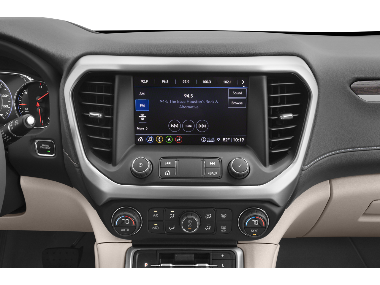 - Audio system, 8" diagonal GMC Infotainment System with Navigation includes multi-touch display, AM/FM/SiriusXM stereo, Bluetooth streaming audio for music and most phones, Android Auto and Apple CarPlay capability for compatible phones, advanced voice recognition, in-vehicle apps, personalized profiles for infotainment and vehicle settings