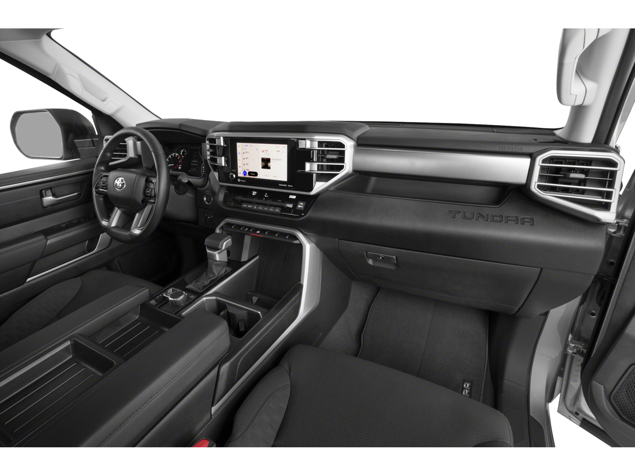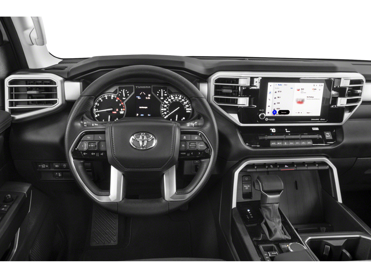 This Tundra SR5 is nicely equipped with SR5 Convenience Package (32 Gallon Fuel Tank, Blind Spot Monitor w/Lane Change Assist, and Parking Support Alert/Brake), 18 Alloy Wheels, 3.31 Axle Ratio, 4-Way Adjustable Front Bucket Seats, 4-Wheel Disc Brakes, 9 Speakers, ABS brakes, Air Conditioning, Alloy wheels, AM/FM radio: SiriusXM, Apple CarPlay/Android Auto, Auto High-beam Headlights, Automatic temperature control, Blind Spot Monitor, Brake assist, Bumpers: body-color, Delay-off headlights, Driver door bin, Driver vanity mirror, Dual front impact airbags, Dual front side impact airbags, Electronic Stability Control, Emergency communication system: Safety Connect (10-year trial), Exterior Parking Camera Rear, Fabric Seat Trim (FB), Front anti-roll bar, Front Bucket Seats, Front Center Armrest, Front fog lights, Front reading lights, Front wheel independent suspension, Fully automatic headlights, Heated door mirrors, Heated Power Black Outside Mirrors, Illuminated entry, Knee airbag, Low tire pressure warning, Occupant sensing airbag, Outside temperature display, Overhead airbag, Overhead console, Panic alarm, Passenger door bin, Passenger vanity mirror, Power door mirrors, Power steering, Power windows, Radio data system, Radio: Audio Multimedia System, Rear reading lights, Rear step bumper, Rear window defroster, Remote keyless entry, Safety Connect, Security system, Speed control, Speed-sensing steering, Split folding rear seat, Steering wheel mounted audio controls, Tachometer, Telescoping steering wheel, Tilt steering wheel, Traction control, Trip computer, Variably intermittent wipers, and Voltmeter.