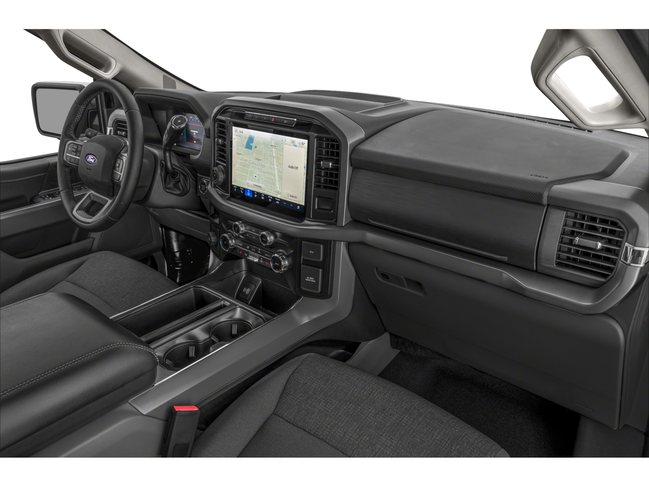 This F-150 XLT is nicely equipped with Equipment Group 302A Mid (400W Cab & Bed Outlets, Adaptive Cruise Control w/Stop & Go, Auto-Dimming Rear-View Mirror, Cloth 40/Console/40 Front Seats, Ford BlueCruise Equipped (90-Day Trial), Heated Front Seats, Intelligent Access w/Push Button Start, Power Glass Heated Sideview Mirrors, Power-Sliding Rear Window, Remote Start System w/Remote Tailgate Release, and Speed Sign Recognition), FX4 Off-Road Package, Mobile Office Package (Console Worksurface and Partitioned Lockable Rear Storage), Tow/Haul Package, 4-Wheel Disc Brakes, 6 Speakers, ABS brakes, Air Conditioning, Alloy wheels, AM/FM radio: SiriusXM with 360L, Auto High-beam Headlights, Auto-dimming Rear-View mirror, Automatic temperature control, Brake assist, Bumpers: chrome, Chrome wheels, Cloth 40/20/40 Front Seat, Compass, Delay-off headlights, Driver door bin, Driver vanity mirror, Dual front impact airbags, Dual front side impact airbags, Electronic Stability Control, Emergency communication system: SYNC 4 911 Assist, Front anti-roll bar, Front Center Armrest w/Storage, Front dual zone A/C, Front fog lights, Front License Plate Bracket, Front reading lights, Front wheel independent suspension, Fully automatic headlights, Heated door mirrors, Illuminated entry, Low tire pressure warning, Navigation system: Connected Navigation, Occupant sensing airbag, Outside temperature display, Overhead airbag, Overhead console, Panic alarm, Passenger door bin, Passenger vanity mirror, Power door mirrors, Power driver seat, Power steering, Power windows, Radio data system, Radio: AM/FM SiriusXM w/360L, Rear reading lights, Rear step bumper, Rear window defroster, Remote keyless entry, Security system, Speed control, Split folding rear seat, Steering wheel mounted audio controls, SYNC 4 w/Enhanced Voice Recognition, Tachometer, Telescoping steering wheel, Tilt steering wheel, Traction control, Trip computer, Variably intermittent wipers, Voltmeter, Wheels: 18 Chrome-Like PVD, and Wheels: 20 Chrome-Like PVD.