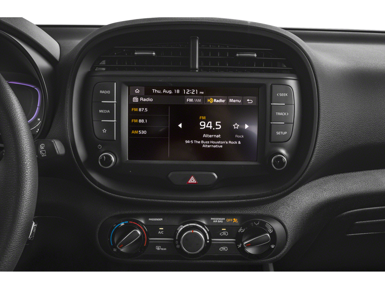 This Soul LX is nicely equipped with 4-Wheel Disc Brakes, 6 Speakers, 6.5J x 16 Alloy Wheels, ABS brakes, Air Conditioning, Apple CarPlay & Android Auto, Auto High-beam Headlights, Brake assist, Bumpers: body-color, Carpeted Floor Mats, Compass, Delay-off headlights, Driver door bin, Driver vanity mirror, Dual front impact airbags, Dual front side impact airbags, Electronic Stability Control, Exterior Parking Camera Rear, Front anti-roll bar, Front Bucket Seats, Front Center Armrest, Front reading lights, Front wheel independent suspension, Fully automatic headlights, Illuminated entry, Low tire pressure warning, Occupant sensing airbag, Outside temperature display, Overhead airbag, Overhead console, Panic alarm, Passenger door bin, Passenger vanity mirror, Power door mirrors, Power steering, Power windows, Radio data system, Radio: AM/FM/MP3/HD Audio System, Rear window defroster, Rear window wiper, Remote keyless entry, Speed control, Speed-sensing steering, Split folding rear seat, Steering wheel mounted audio controls, Tachometer, Telescoping steering wheel, Tilt steering wheel, Traction control, Trip computer, Variably intermittent wipers, and Woven & Tricot Cloth Seat Trim.