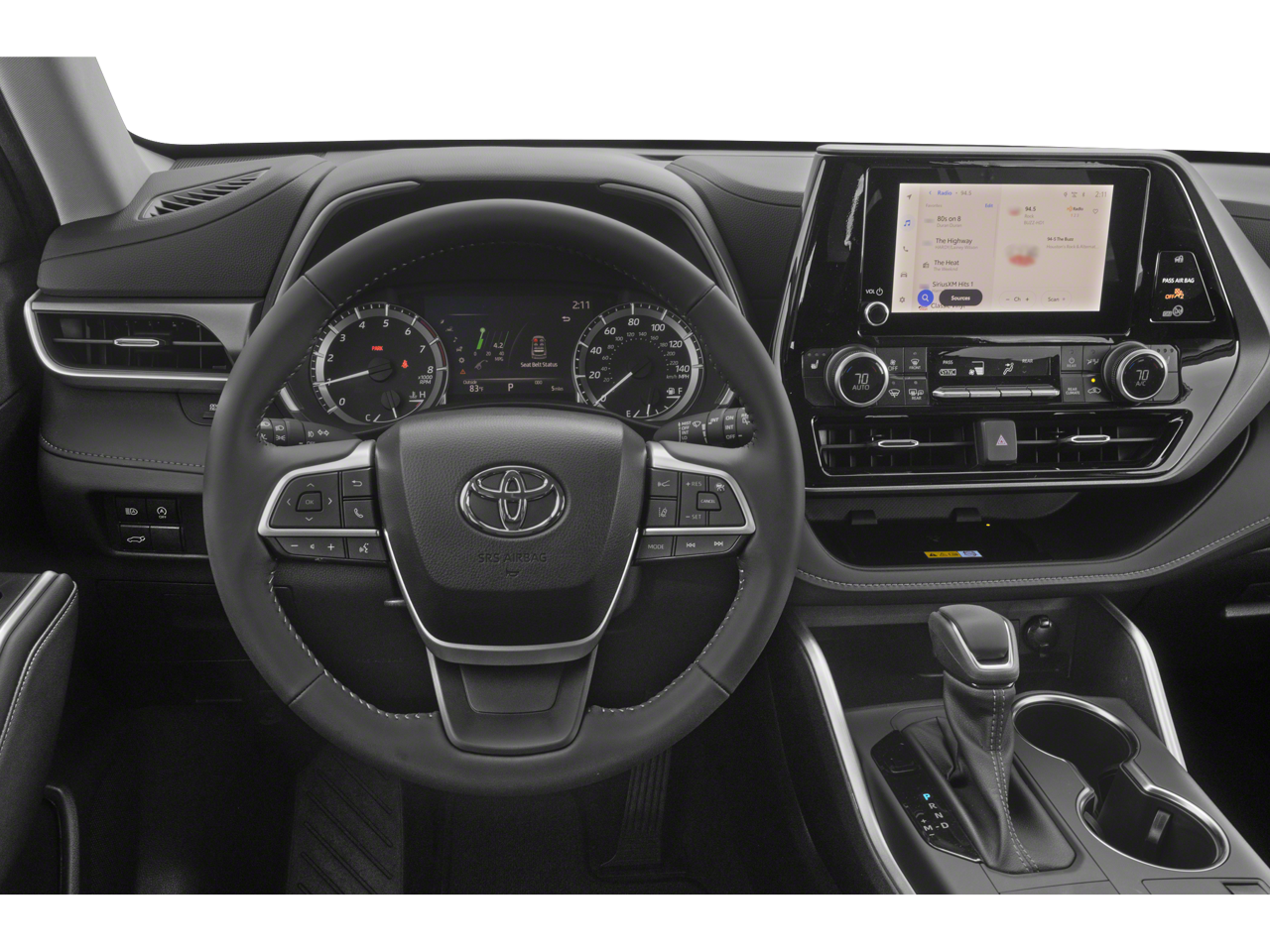 This Highlander XLE is nicely equipped with ABS brakes, Active Cruise Control, Alloy wheels, Electronic Stability Control, Front dual zone A/C, Heated door mirrors, Heated Front Bucket Seats, Heated front seats, Illuminated entry, Low tire pressure warning, Power Liftgate, Power moonroof, Remote keyless entry, Traction control, 3.329 Axle Ratio, 3rd row seats: split-bench, 4-Wheel Disc Brakes, 6 Speakers, Air Conditioning, AM/FM radio: SiriusXM, Apple CarPlay/Android Auto, Auto High-beam Headlights, Auto-dimming Rear-View mirror, Automatic temperature control, Brake assist, Bumpers: body-color, Delay-off headlights, Driver door bin, Driver vanity mirror, Dual front impact airbags, Dual front side impact airbags, Emergency communication system: Safety Connect (up to 10-year trial subscription), Exterior Parking Camera Rear, Four wheel independent suspension, Front anti-roll bar, Front Bucket Seats, Front Center Armrest, Front fog lights, Front reading lights, Fully automatic headlights, Garage door transmitter: HomeLink, Knee airbag, Leather Shift Knob, Leather steering wheel, Occupant sensing airbag, Outside temperature display, Overhead airbag, Overhead console, Panic alarm, Passenger door bin, Passenger vanity mirror, Power door mirrors, Power driver seat, Power passenger seat, Power steering, Power windows, Radio: 8 Toyota Audio Multimedia, Rear air conditioning, Rear anti-roll bar, Rear reading lights, Rear window defroster, Rear window wiper, Reclining 3rd row seat, Security system, SofTex Seat Trim, Speed control, Speed-sensing steering, Split folding rear seat, Spoiler, Steering wheel mounted audio controls, Tachometer, Telescoping steering wheel, Tilt steering wheel, Trip computer, Turn signal indicator mirrors, Variably intermittent wipers, and Wheels: 18 Machined-Finish Alloy.