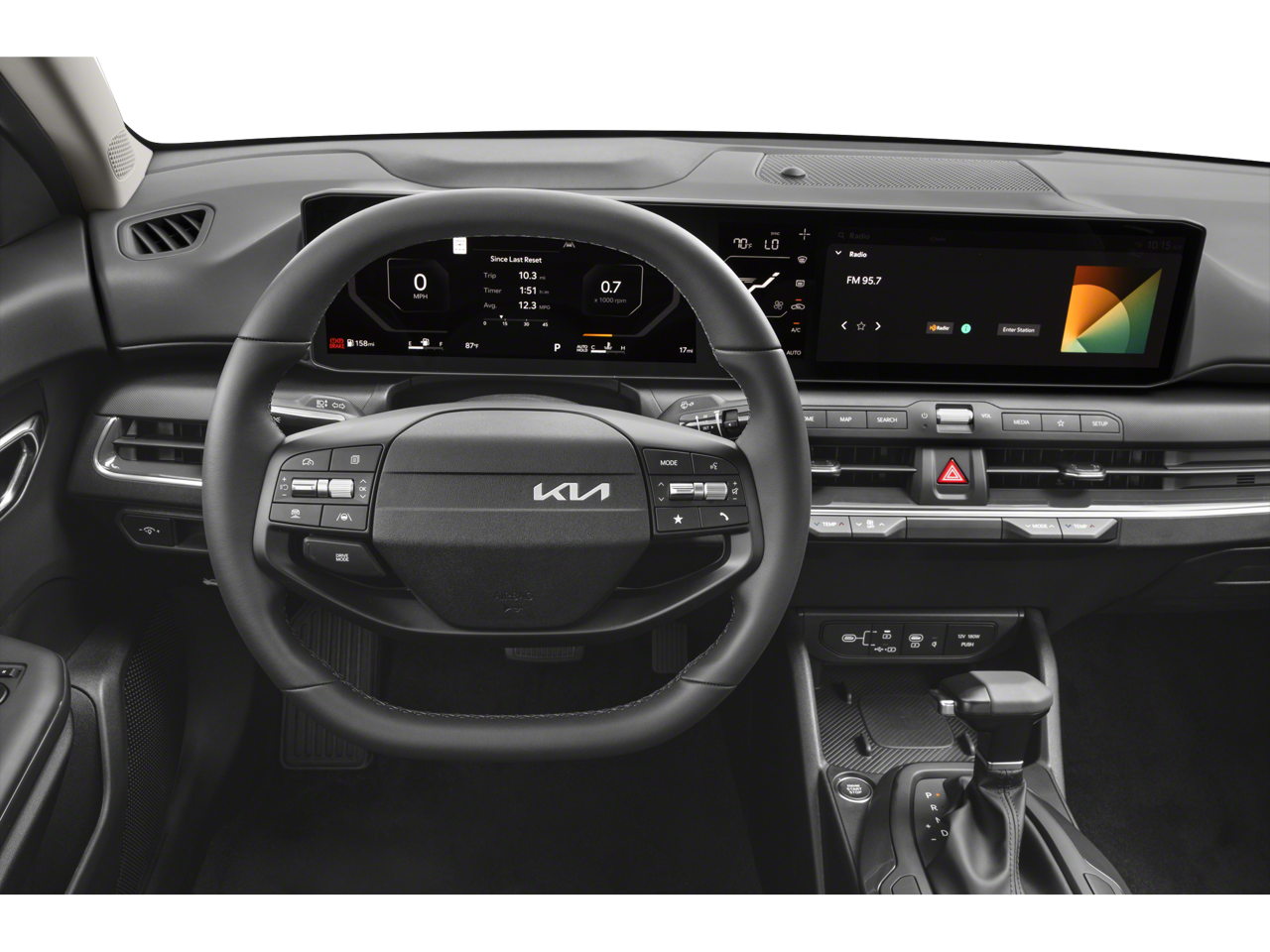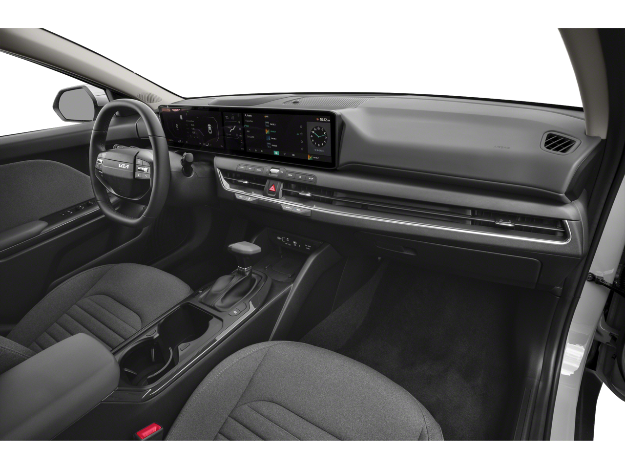 This K4 EX is nicely equipped with 4-Wheel Disc Brakes, 6 Speakers, ABS brakes, Air Conditioning, Alloy wheels, AM/FM radio: SiriusXM, Apple CarPlay & Android Auto, Auto High-beam Headlights, Automatic temperature control, Brake assist, Bumpers: body-color, Carpeted Floor Mats, Delay-off headlights, Driver door bin, Driver vanity mirror, Dual front impact airbags, Dual front side impact airbags, Electronic Stability Control, Front anti-roll bar, Front Bucket Seats, Front Center Armrest, Front dual zone A/C, Front reading lights, Front wheel independent suspension, Fully automatic headlights, Heated door mirrors, Illuminated entry, Low tire pressure warning, Occupant sensing airbag, Outside temperature display, Overhead airbag, Overhead console, Panic alarm, Passenger door bin, Passenger vanity mirror, Power door mirrors, Power steering, Power windows, Radio data system, Radio: 12.3 Touchscreen Audio Display, Rear side impact airbag, Rear window defroster, Remote keyless entry, Security system, Speed control, Split folding rear seat, Steering wheel mounted audio controls, Tachometer, Telescoping steering wheel, Tilt steering wheel, Traction control, Trip computer, Upgraded Cloth Seat Trim, Variably intermittent wipers, and Wheels: 17 x 7.0J Black Machined Alloy.